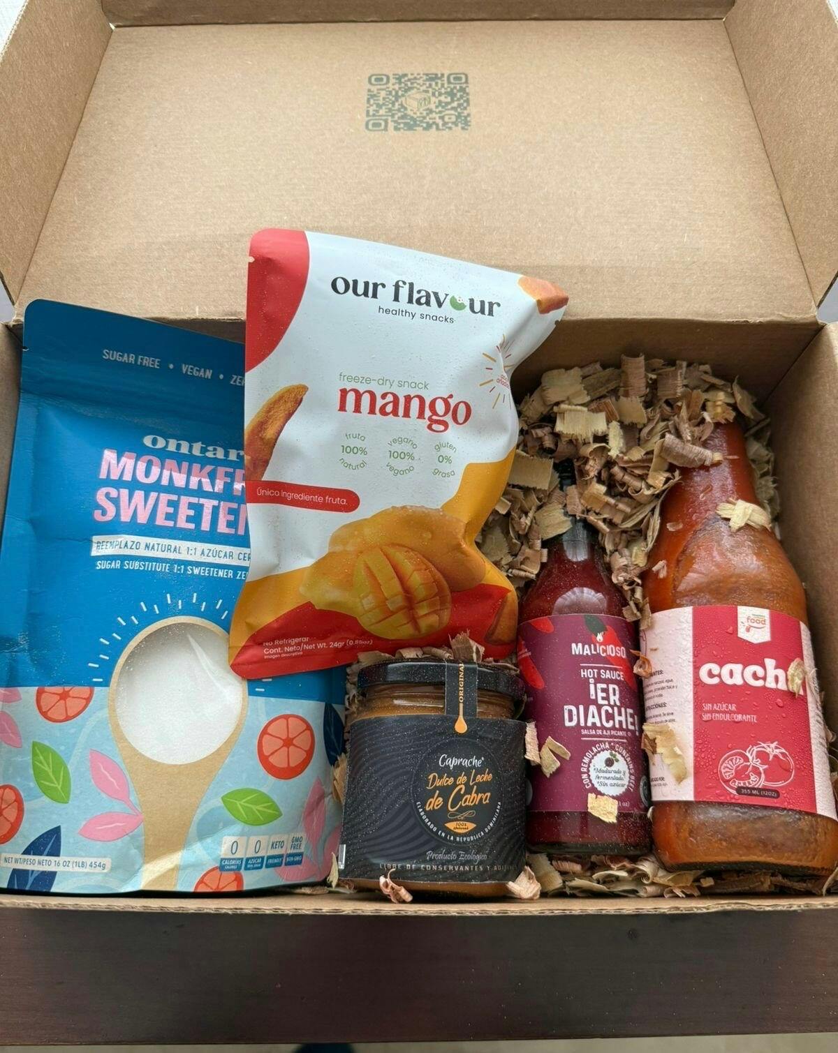 Tu FoodieBox mes tras mes, directo a la puerta de tu casa. Recibirás 5 productos full size gourmet dominicanos seleccionados cuidadosamente para ti. El pago se realiza de forma mensual, el mismo día de tu transacción inicial.
